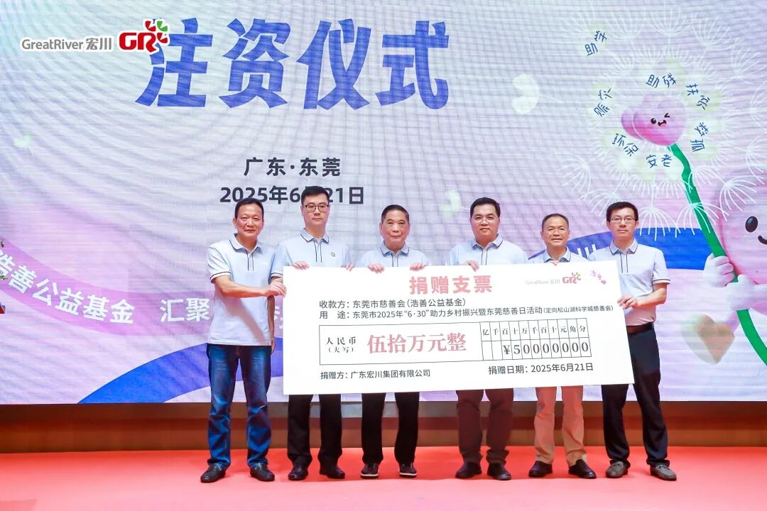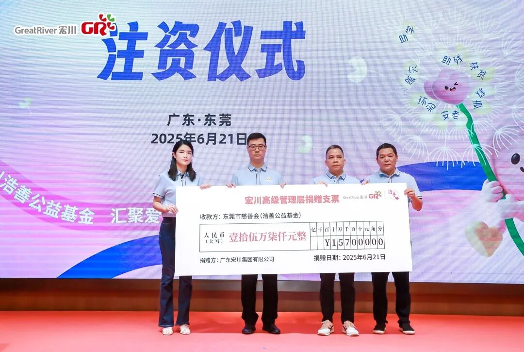 在多方的共同见证下,活动现场举行了多个捐赠项目的认捐仪式,一是宏川高管向东莞市慈善会“浩善公益基金”注资15.7万元,用于支持公益慈善事业;二是宏川集团向东莞市慈善会“浩善公益基金”注资50万元,用于东莞市2025年“6·30”助力乡村振兴暨东莞慈善日活动(定向松山湖科学城慈善会);三是太仓阳鸿向东莞市慈善会“浩善公益基金”注资100万元,用于建设太仓郑和水上搜救馆;四是宏川集团向香港城市大学(东莞)教育基金会认捐1800万元,用于支持学校基础设施建设、人才培养、学术研究等项目。