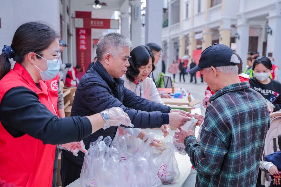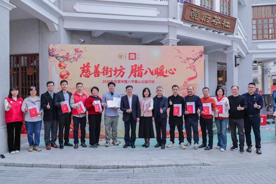 1月26日上午,由东莞市慈善会与莞城街道办事处共同主办的“慈善街坊 腊八暖心”公益行动在莞城温暖开启。东莞市民政局局长、市慈善会会长黄荣峰,莞城街道办事处党工委书记李汉容,东莞市民政局三级调研员、市慈善会常务副会长艾树珍,莞城街道办事处党工委委员张永红等领导,以及爱心企业代表和志愿者共同参与了本次活动。