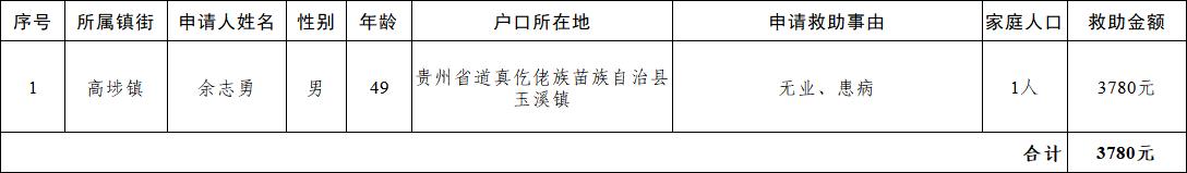 经审核,申请人余志勇符合《东莞市临时救助办法》救助条件,东莞市慈善会已向其拨付相应救助金。根据《东莞市临时救助办法》有关规定,现将获得救助的申请人向社会进行公示,公示时间为2026年3月26日至2026年4月26日(公示期一个月),请各界予以监督。如有异议,请及时与东莞市慈善会联系(联系电话:0769-22227699)。