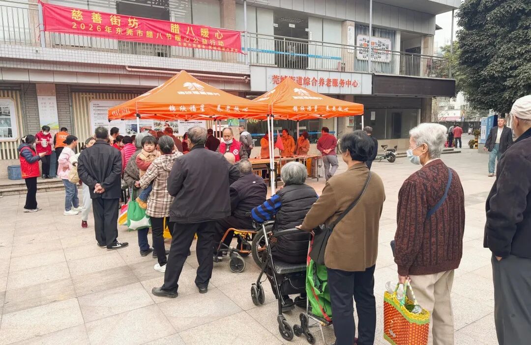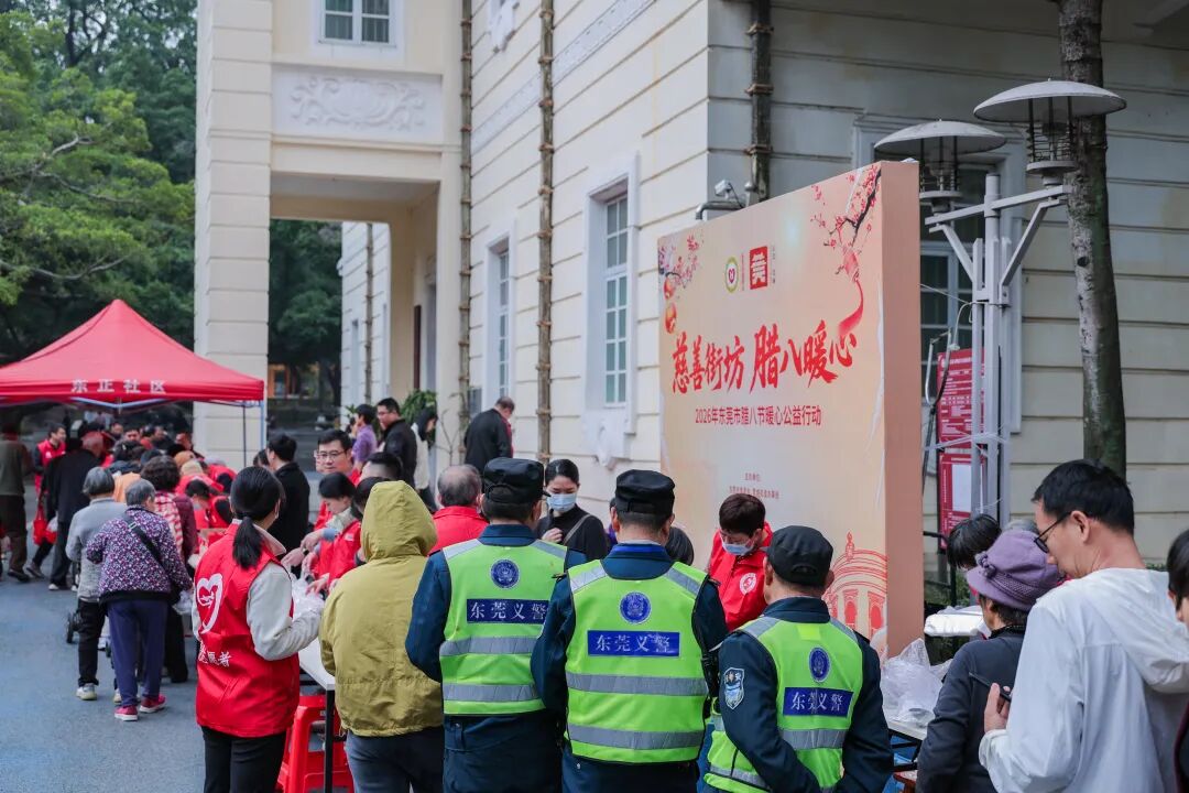 1月26日上午,由东莞市慈善会与莞城街道办事处共同主办的“慈善街坊 腊八暖心”公益行动在莞城温暖开启。东莞市民政局局长、市慈善会会长黄荣峰,莞城街道办事处党工委书记李汉容,东莞市民政局三级调研员、市慈善会常务副会长艾树珍,莞城街道办事处党工委委员张永红等领导,以及爱心企业代表和志愿者共同参与了本次活动。