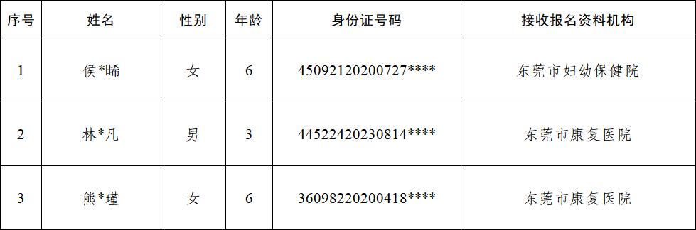 为确保慈善救助工作公开、公平、公正,根据《东莞市慈善会“星光行动”孤独症儿童康复救助项目实施方案(试行)》有关规定和“星光行动”孤独症儿童康复救助项目审核委员会的审核意见,现将通过审核的3名拟资助对象名单向社会公示,请社会各界予以监督。公示期间,如对公示内容存在异议,请迳向东莞市慈善会反映。联系电话:黄小姐0769-22227699、钟先生0769-22222628。